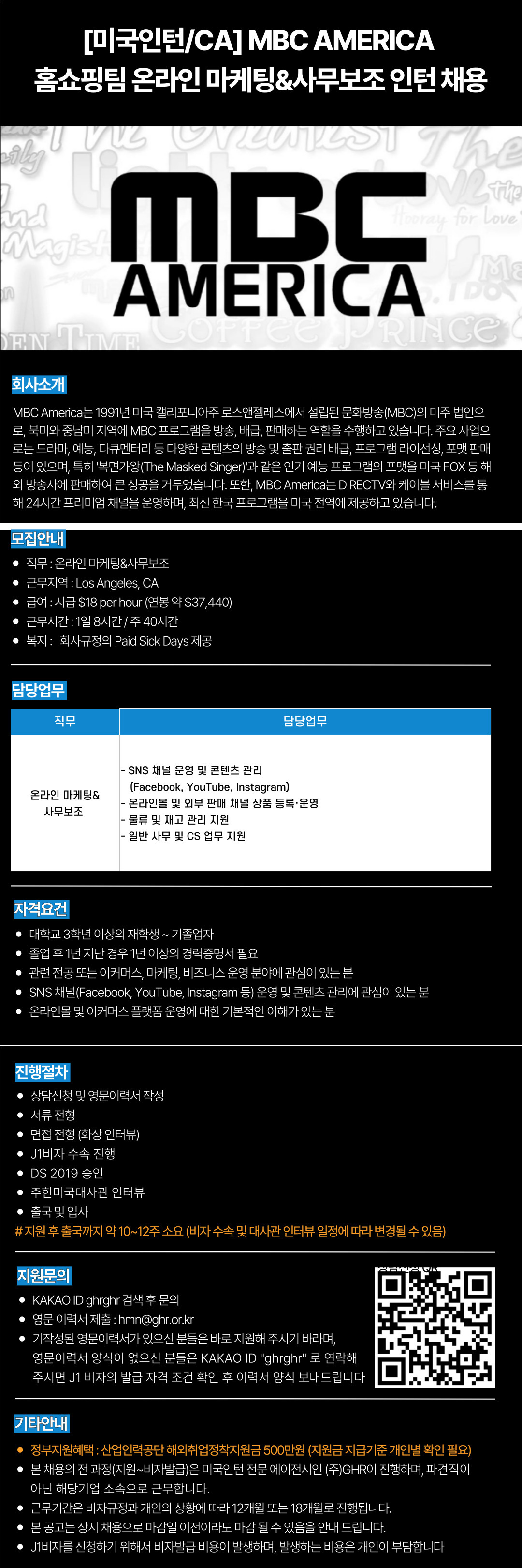 [취업] [미국인턴CA] MBC AMERICA 홈쇼핑팀 온라인 마케팅&사무보조 인턴 (~04/12)
